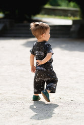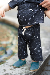 62/68 - 122/128. Velikosti jsou jako dvouvelikosti, střih je velmi volný a kalhoty 3/4 délky. Doporučuji dítě předem přeměřit.