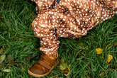 Střih je dostatečně široký a obsahuje vsadku rozkroku a tak dítě neomezuje v pohybu a spodní část je širší. Můžete oblékat podvlékačky, legíny pokud bude větší zima anebo punčochy.