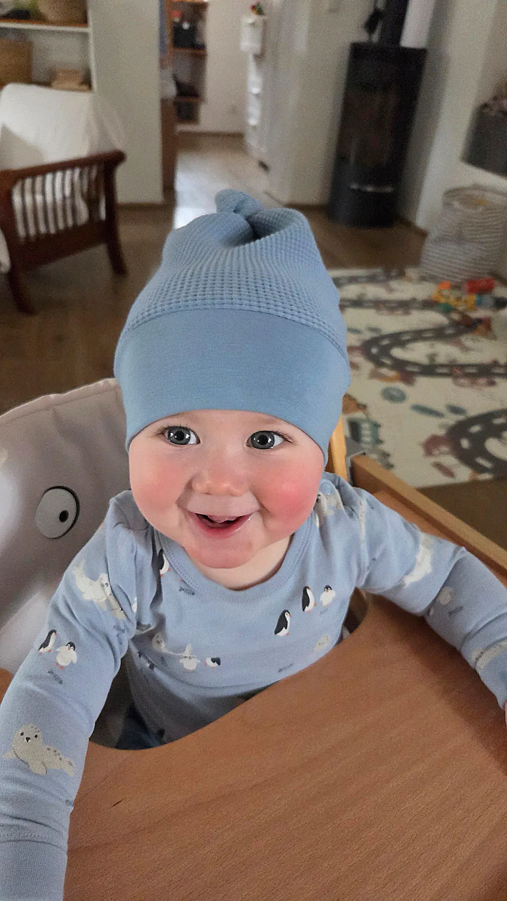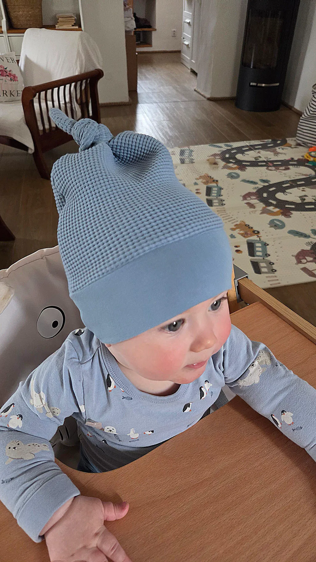 Ušijte pro své miminko praktickou a krásně sedící čepičku s jedním nebo dvěma uzlíky. Čepička se dá šít ze žebrovaných úpletů, z klasických úpletů, svetrovin, teplákovin, inetrlocků. Tedy pružných materiálů obecně.